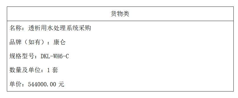 二、項(xiàng)目名稱:透析用水處理系統(tǒng)采購(gòu)