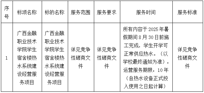 二、項目名稱:廣西金融職業(yè)技術(shù)學(xué)院學(xué)生宿舍樓熱水系統(tǒng)建設(shè)經(jīng)營服務(wù)項目